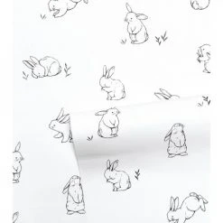 Lilipinso Stickers Et Papiers-peint Enfant Papier Peint Lapins En Papier Noir 50cm X 10m