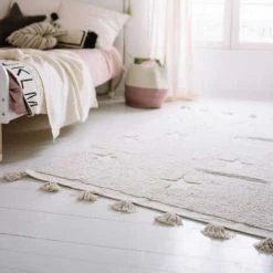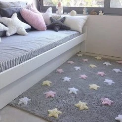 Lorena Canals Tapis Enfant Tapis Coton Motif Petites Ă©toiles 3 Couleurs – Gris Rose – 120 X 160