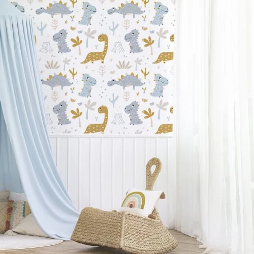 Lilipinso Stickers Et Papiers-peint Enfant Décorl Jurrasic En Papier Gris 4m X 2,48 M