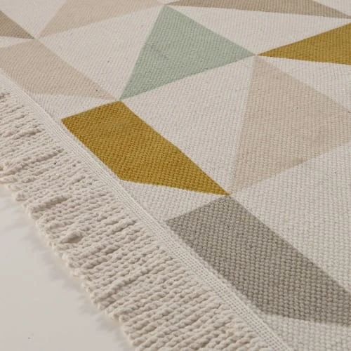 Ce tapis aux motifs gĂ©omĂ©triques ajoutera une belle note de couleur et de fantaisie sur le sol d’une chambre ou d’une salle de bain. HabillĂ© de franges Ă chaque extrĂ©mitĂ©, ce petit tapis en coton finalisera la dĂ©coration de la chambre de votre enfant. Le dĂ©tail dĂ©co : craquez pour ses couleurs vintage ! Notre conseil : ce tapis pourra Ă©galement servir de tapis de jeux.