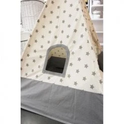 Beeloom Tipis Enfant Tente Tipi Pour Enfant En Bois Naturel Et Polyester Imperméable Gris