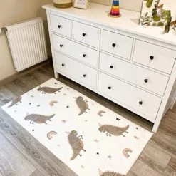 Ce tapis pour enfants dinosaures dispose d’un support antidĂ©rapant. Son design colorĂ© ne manquera pas de plaire Ă votre enfant ! Le design colorĂ© prĂ©sente des grands dinosaures vert. Vous pouvez placer ce tapis dinosaure enfant n’importe oĂą dans votre maison et il sera superbe ! Il est parfait pour les enfants de tous âges et constitue une excellente idĂ©e de cadeau pour les anniversaires ou les fĂŞtes.