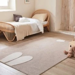 Nazar Tapis Enfant Tapis Beige Et Crème Motif En Relief Lapin Doux – 80×150